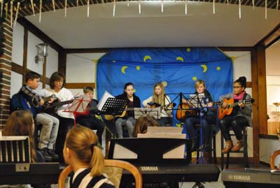 Musizierkreiskinder und den Zuhörern unter Begleitung des Gitarrenkurs klang für